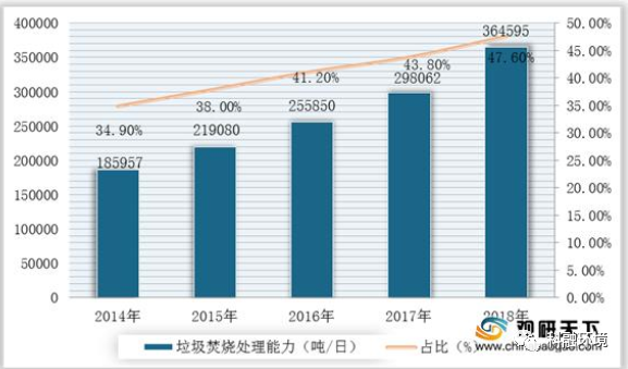 2014-2018年我国垃圾焚烧处理量及占生