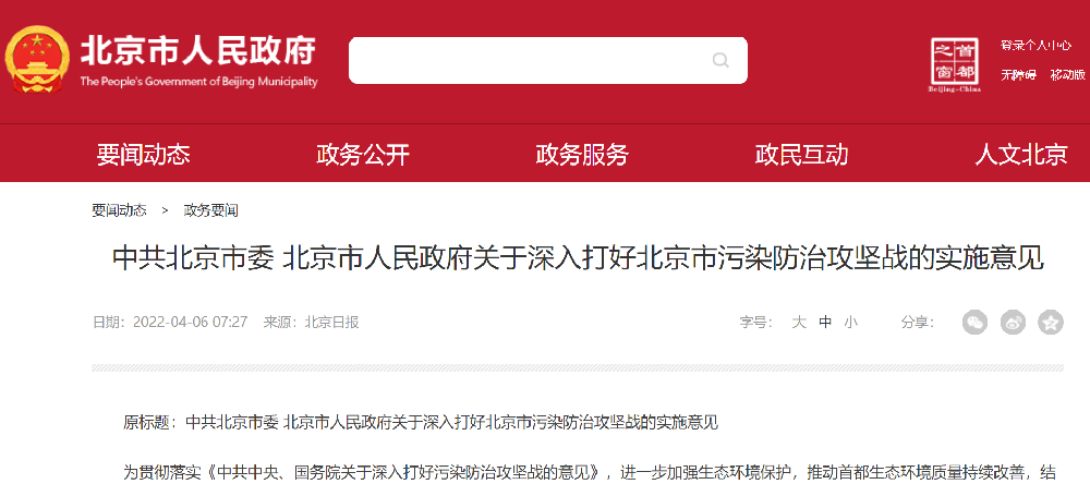 北京印发深入打好北京市污染防治攻坚战的实施意见