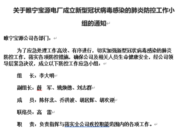 睢宁宝源新能源发电有限公司:坚决打好疫情保卫战