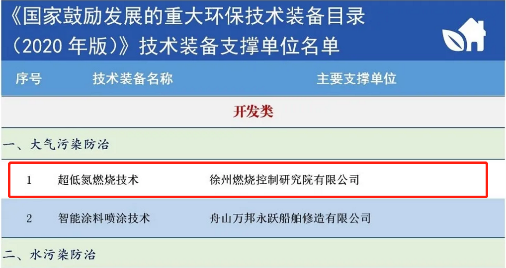 强!科融环境子公司徐州燃烧控制研究院有限公司上榜《国家鼓励发展的重大环保技术装备目录(2020 年版)》